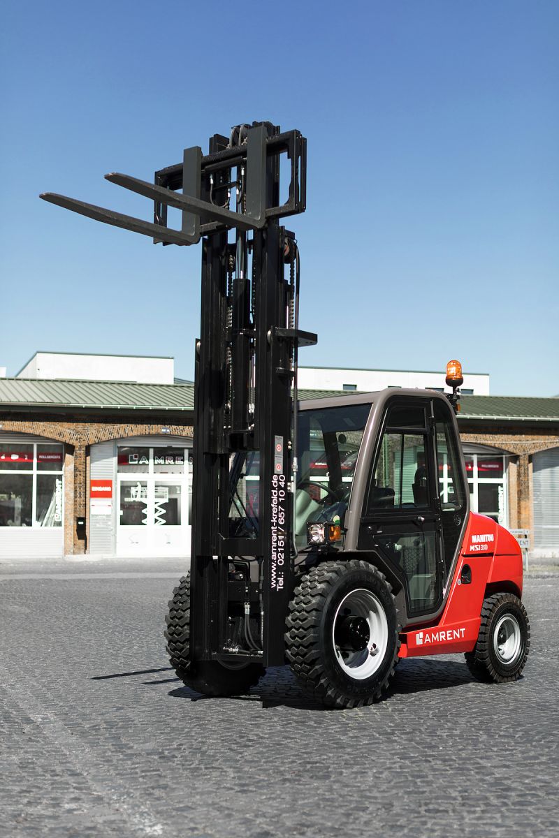 Der Manitou MSI 35 ist ein Geländestapler mit zwei Antriebsrädern. Mit einer Tragkraft von 3,5 to kann er mit geländegängigen Luftreifen und einer sehr gute Traktion problemlos auf unbefestigtem Gelände bewegt werden. Für den Komfort des Bedieners ist der MSI 35 mit einer geräumigen gefederten Vollkabine versehen. Er ist ausgerüstet mit einem Seitenschieber, Rückwarnsignal und Straßenbeleuchtung.